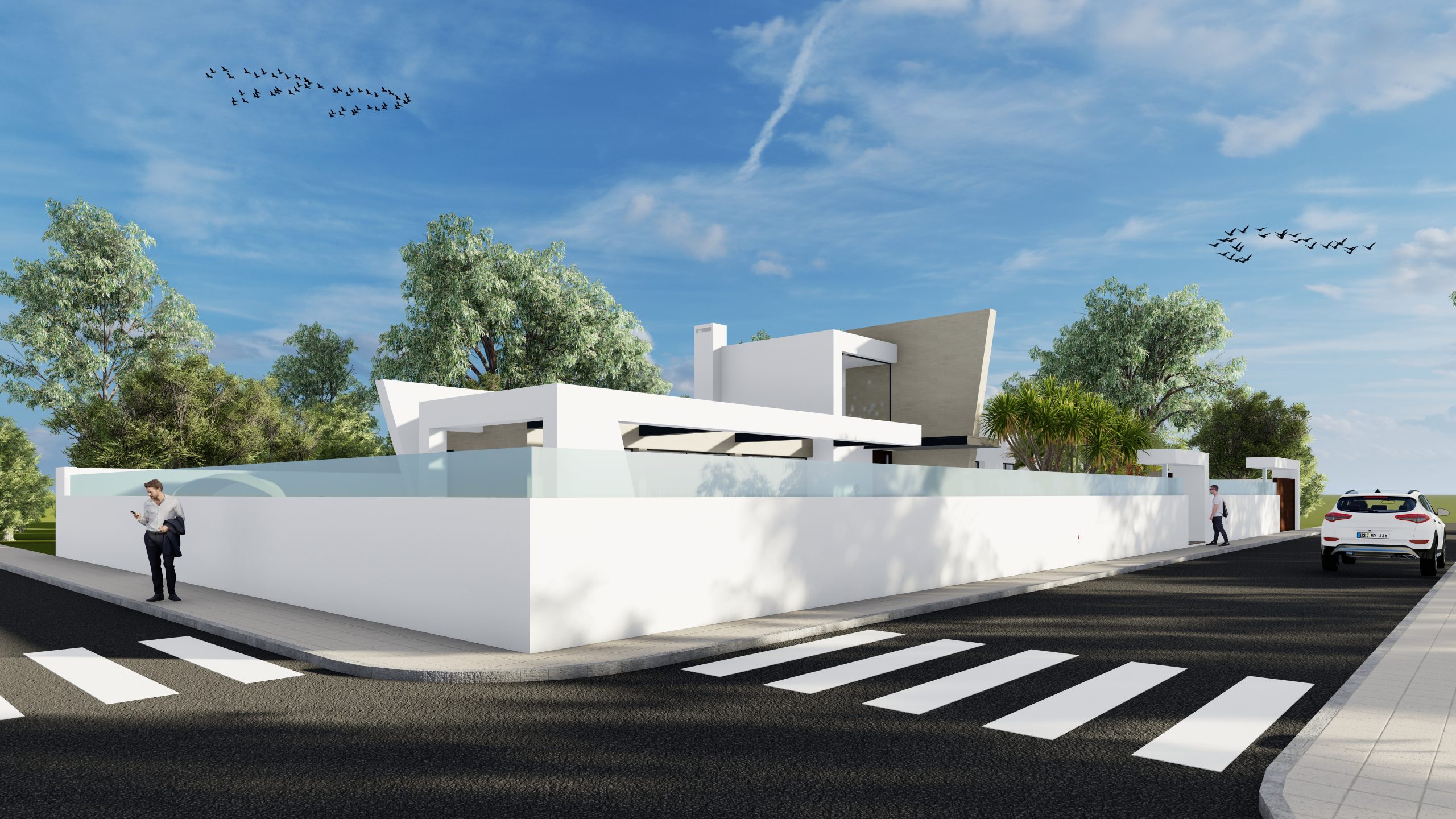 Se trata de una vivienda unifamiliar aislada desarrollada en tres niveles: dos plantas sobre rasante y una planta sótano, implantada sobre una parcela de topografía llana. El diseño busca una organización funcional y clara de los espacios, priorizando la entrada de luz natural, las vistas al entorno y la conexión con las zonas exteriores.